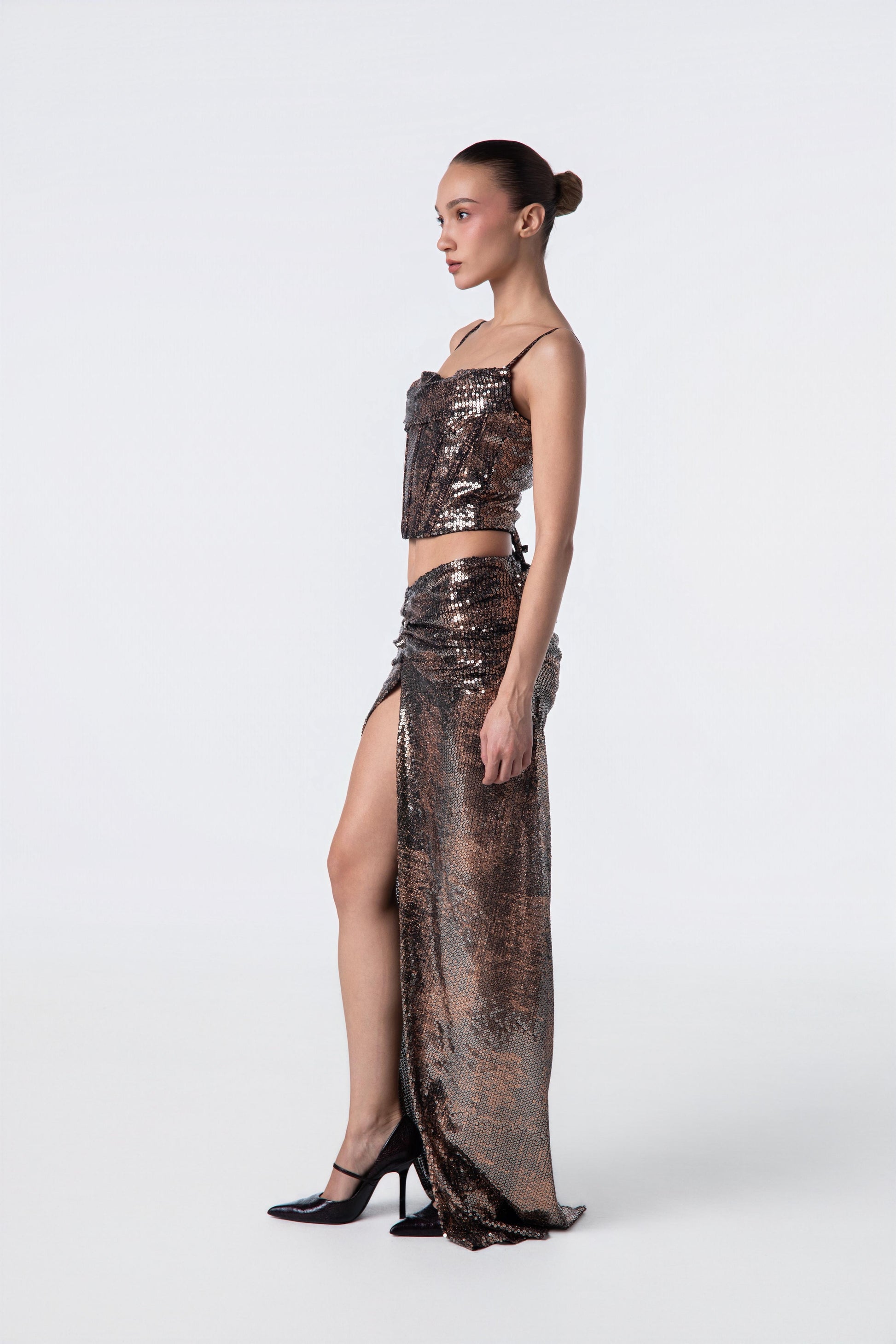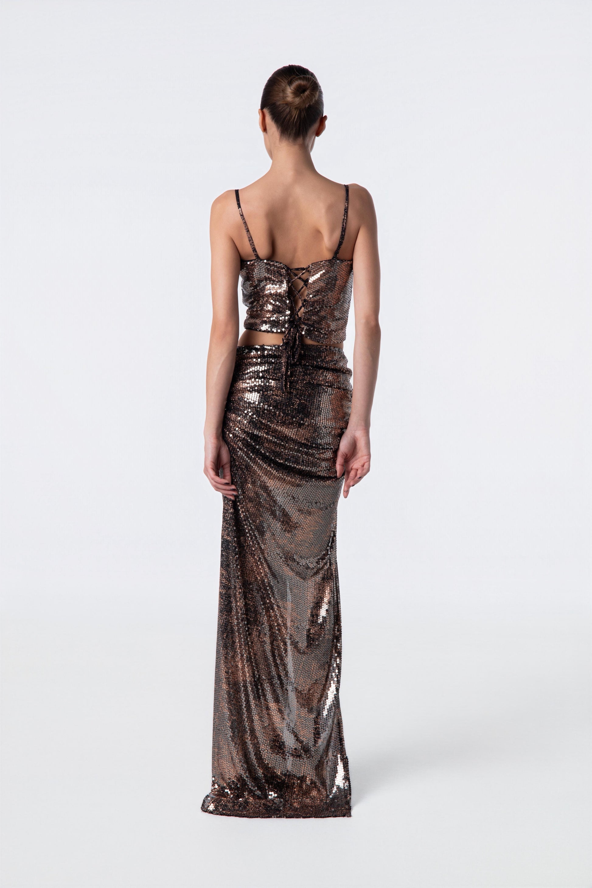CRAFTED FROM SHIMMERING PAILLETTES.